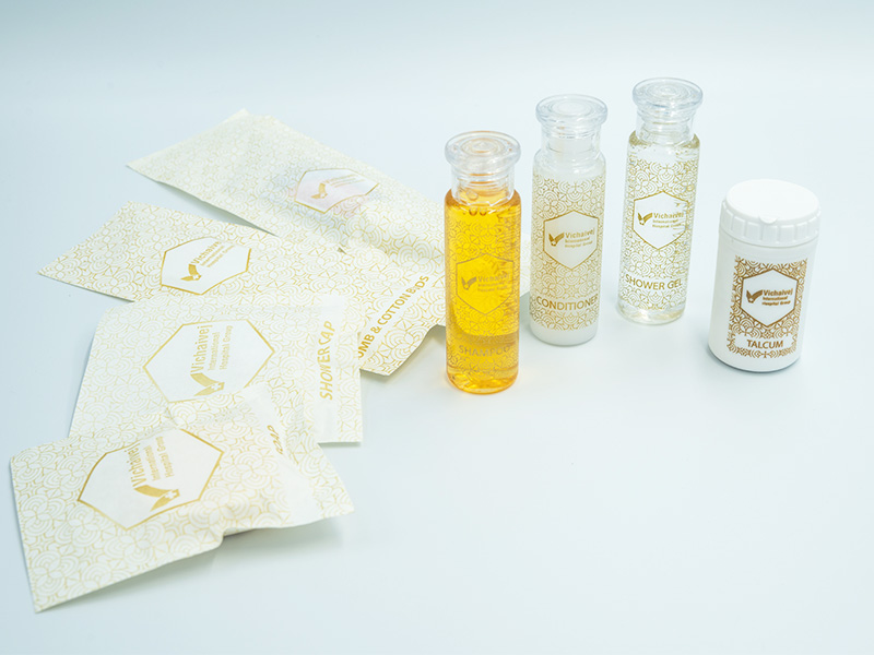 ผู้ผลิตของใช้ในห้องพักโรงแรม-รีสอร์ท ชุดคอลเลคชั่นสำหรับโรงแรม ดีไซน์พิเศษ อาทิ สบู่ก้อนใส่กล่องกระดาษ สบู่เหลว-แชมพู-ครีมนวด-โลชั่น-แป้งโรยตัว-น้ำยาล้างจาน-เจลล้างมือ บรรจุขวดพลาสติกรูปทรงต่างๆ ชุด คอตตอนบัด-หวี-แปรงสีฟัน-ยาสีฟัน-หมวกคลุมผม บรรจุกล่องกระดาษพิมพ์แบรนด์ลูกค้า บรรจุซองกระดาษ บรรจุซองพลาสติก พิมพ์สกรีนโลโก้รูปแบบต่างๆ ส่งมอบความรู้สึกสะอาดมีอนามัย ที่โกนหนวด ถุงครอบแก้ว ถุงผ้าอนามัย ถุงซักรีด รองเท้าใส่ในห้อง และของพรีเมี่ยมต่างๆ พิมพ์สกรีนโลโก้โรงแรม-รีสอร์ท และ โรงพยาบาล